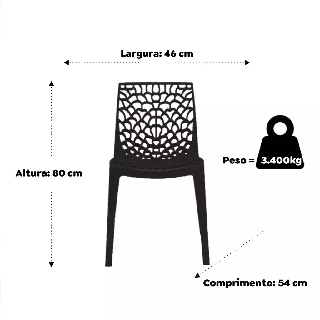 Ideal para quem procura praticidade e estilo, o Kit Jogo 4 Cadeiras Coral Gruvyer Pretas é a escolha certa para renovar seu espaço com um produto de alta resistência, fácil de manter e que traz um toque de sofisticação a qualquer ambiente.