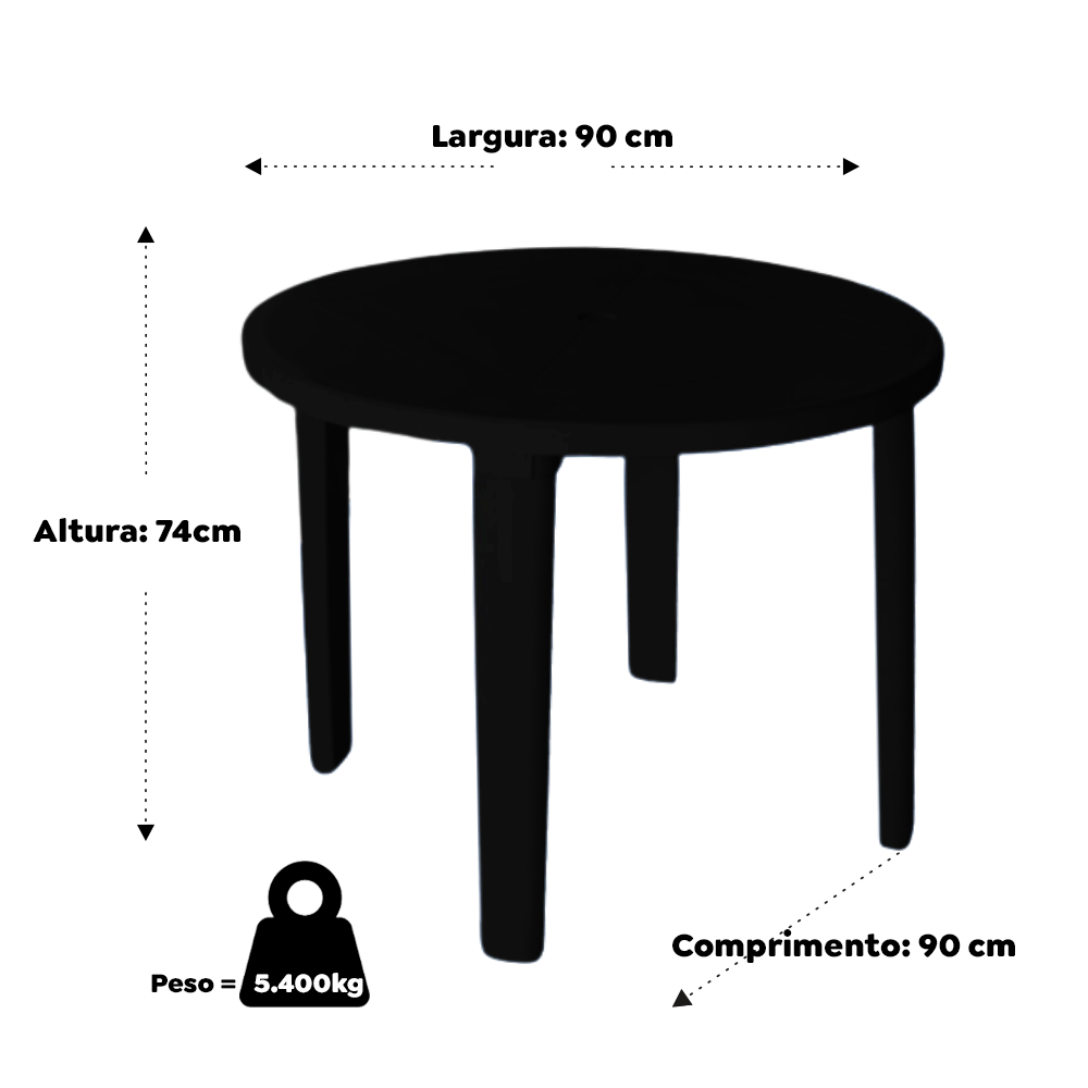 Mesa Plástica Desmontável Redonda preta 80x80 CM